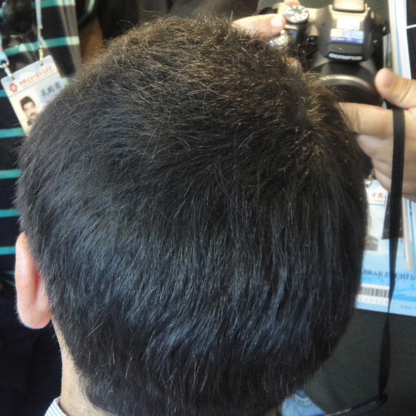 The following images illustrate the remarkable appearance of hair after the application of THK Hair; Building Fibres. (Click on an image for a larger view)